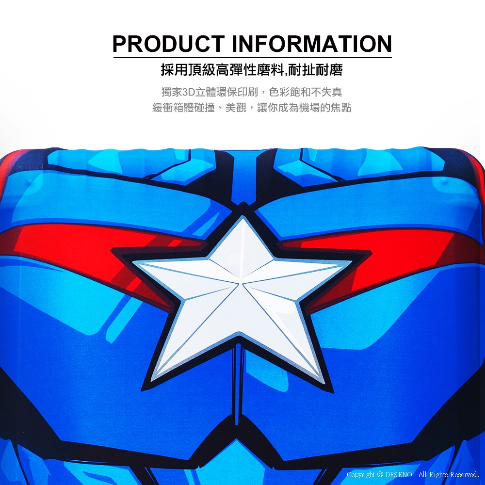 【任選5件999】Deseno 笛森諾 英雄造型美國隊長防刮彈性布 行李箱箱套 19-29吋行李箱適用-原廠授