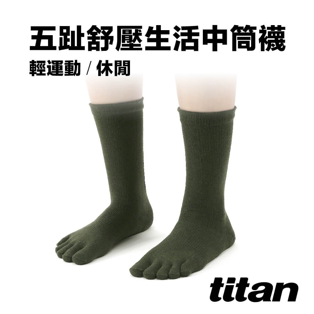 titan 太肯運動 五趾舒壓生活中筒襪_軍綠|厚襪|五趾分離好乾爽。小腿激瘦好修長|棉襪輕機能|長襪五指襪|官方旗艦店