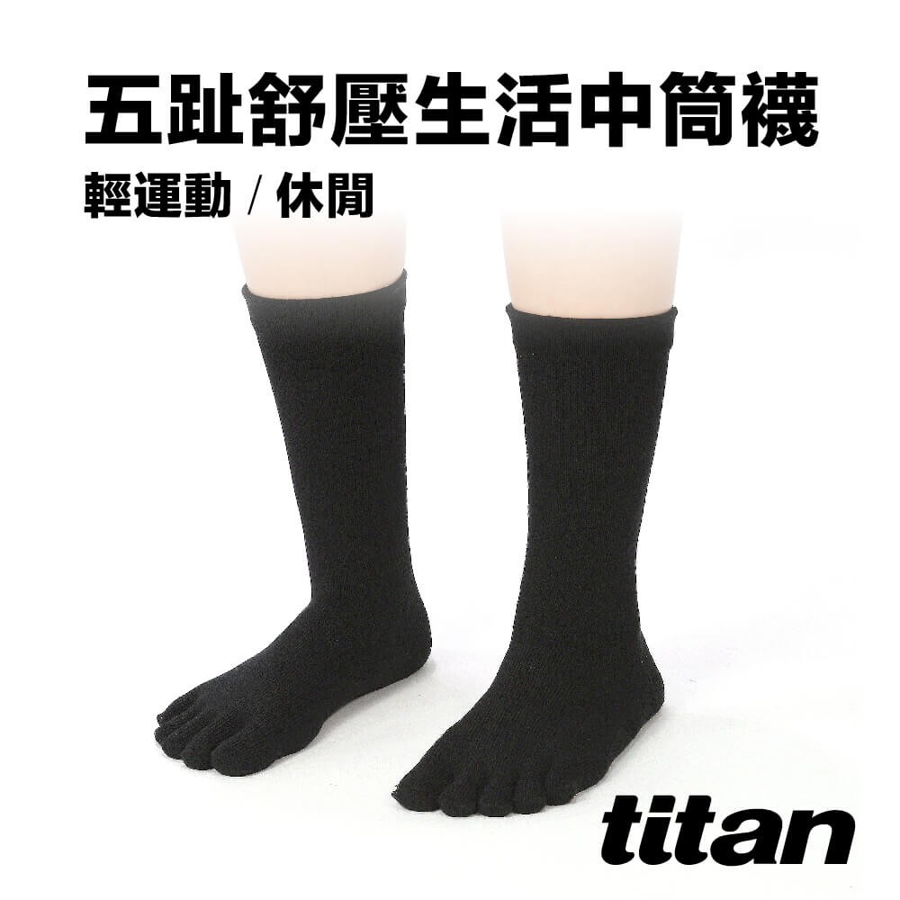 titan 太肯運動 五趾舒壓生活中筒襪_黑 |厚襪|五趾分離好乾爽。小腿激瘦好修長|棉襪輕機能|長襪五指襪|官方旗艦店