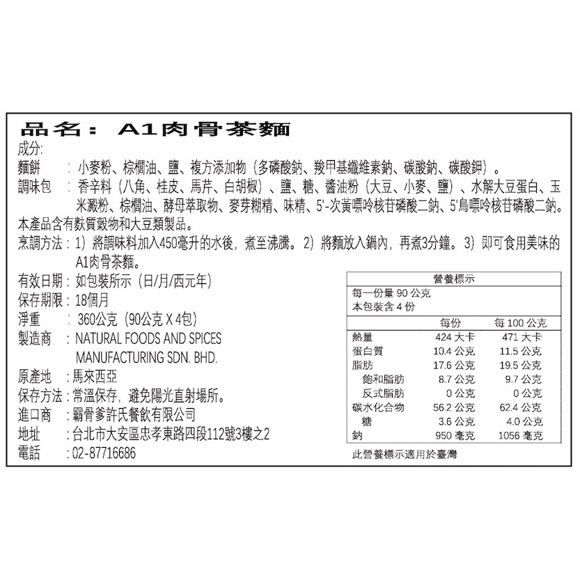 【A1】肉骨茶麵 清真認證 90gx4/包-1組 /泡麵 異國泡麵 即煮即食