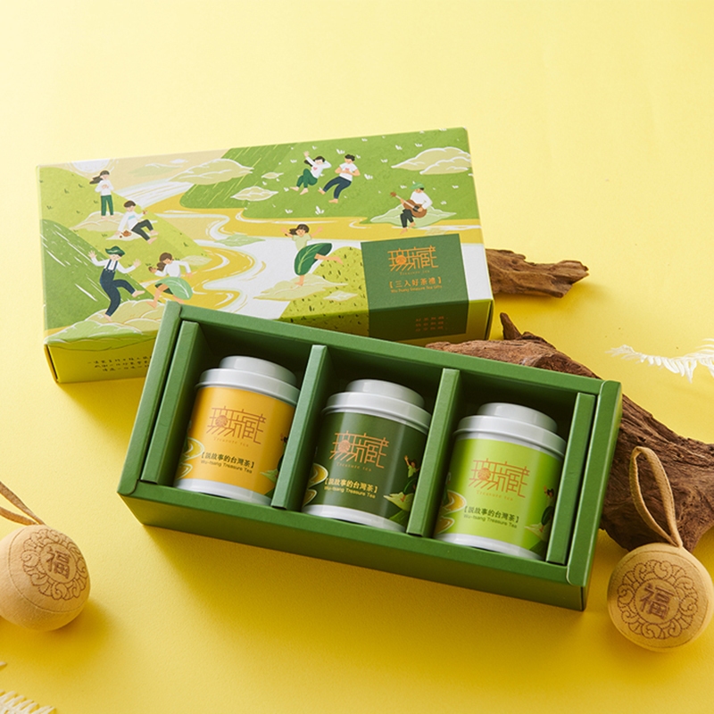 無藏 阿里山故事茶【愉悅茶山】【清新款】精美3入茶葉小禮盒(3罐/盒) 茶葉禮盒