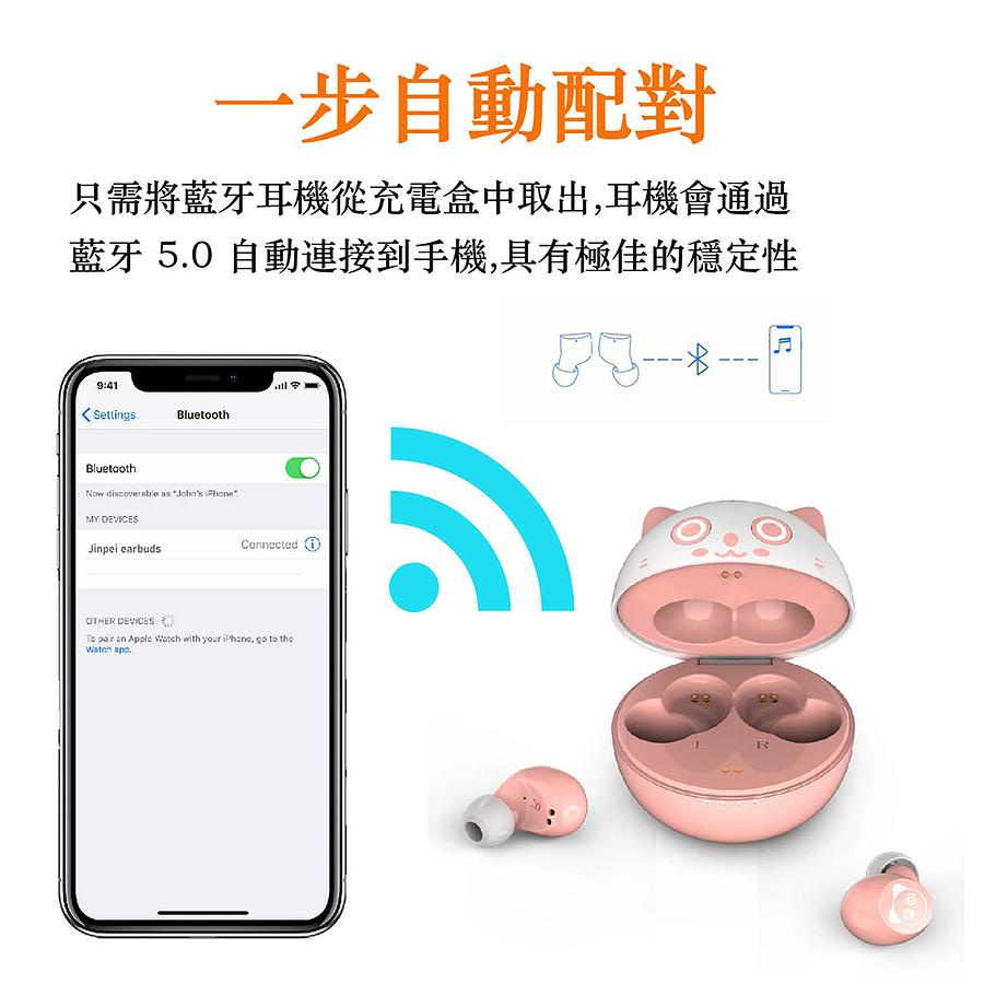 【Jinpei 錦沛】粉紅貓 真無線藍牙耳機 藍牙5.0 JE-05B_品牌旗艦館