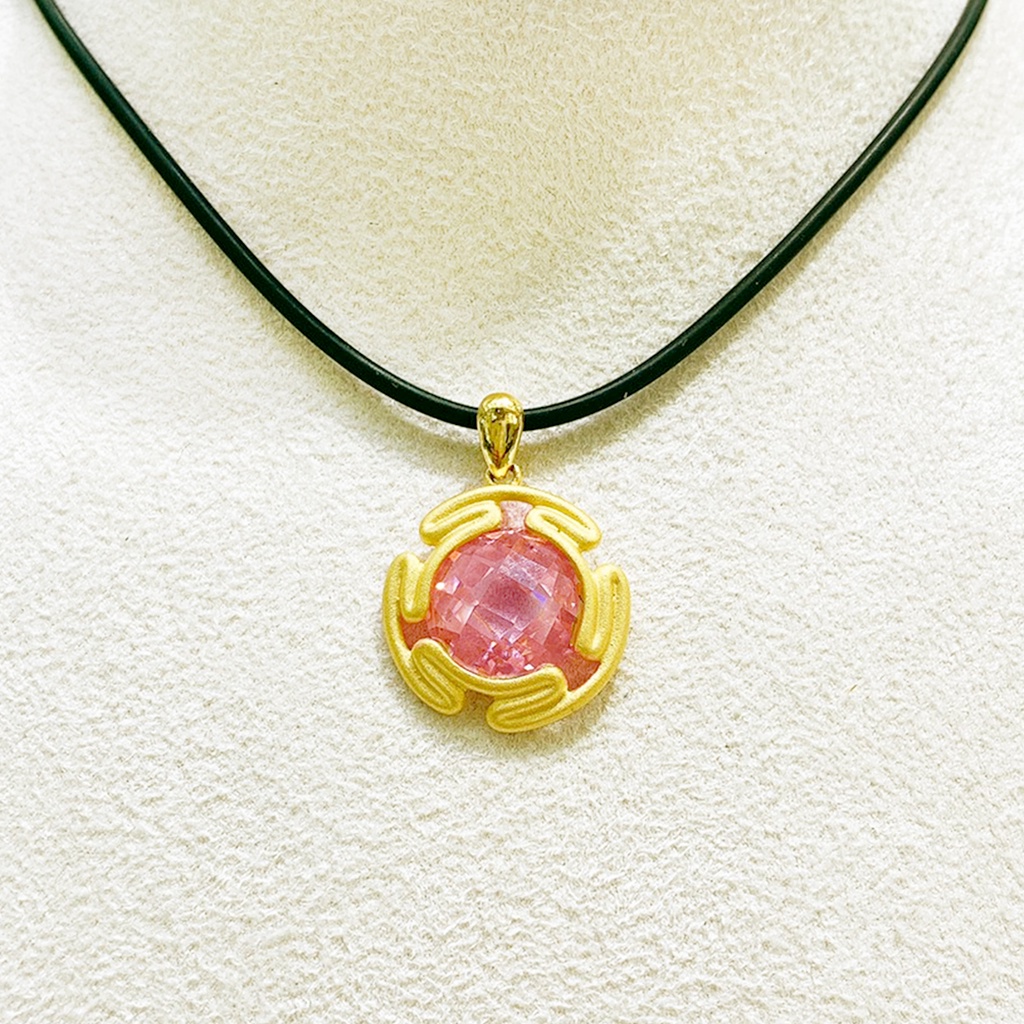 【金勝珠寶】 黃金墜子|附黑皮繩 寶石 幾何 流線 時尚