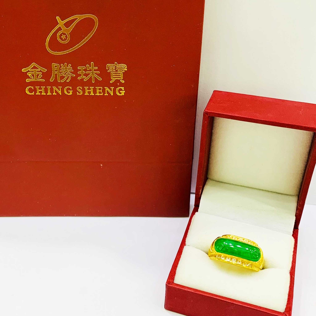 【金勝珠寶】 黃金戒指|活動式 翡翠 寶石 時尚 經典