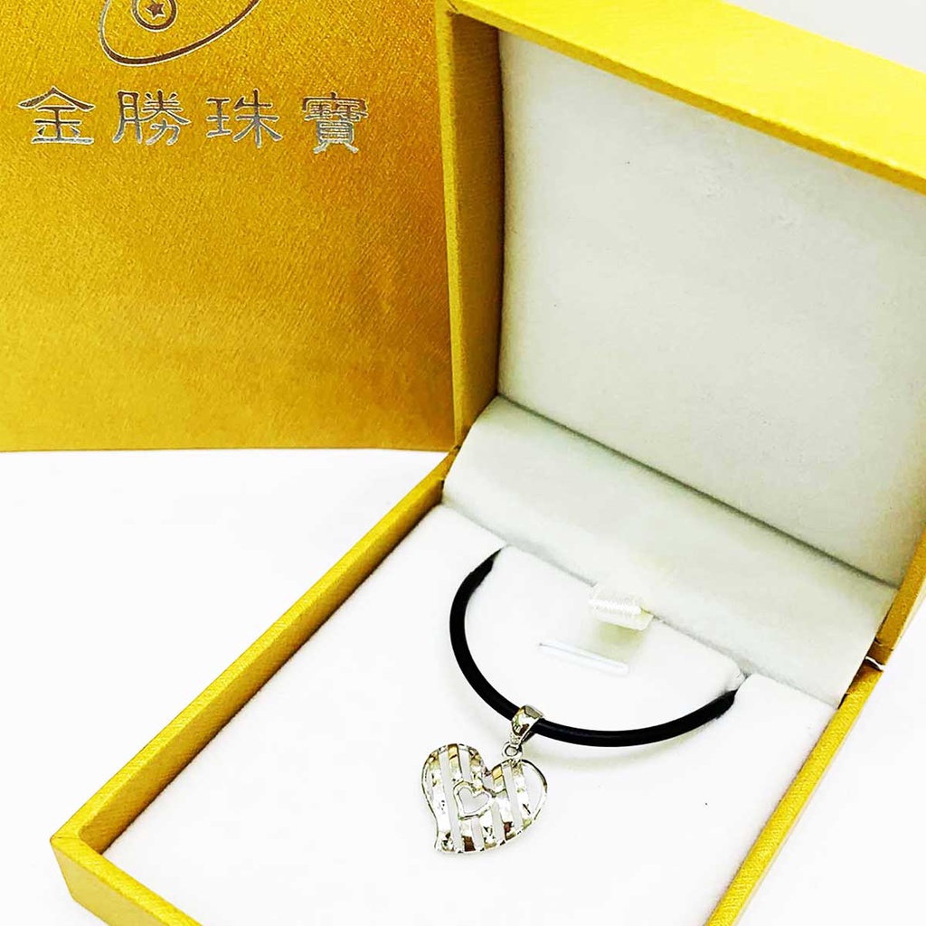 【金勝珠寶】 白金墜子|附黑皮繩 愛心 Love 流線 時尚