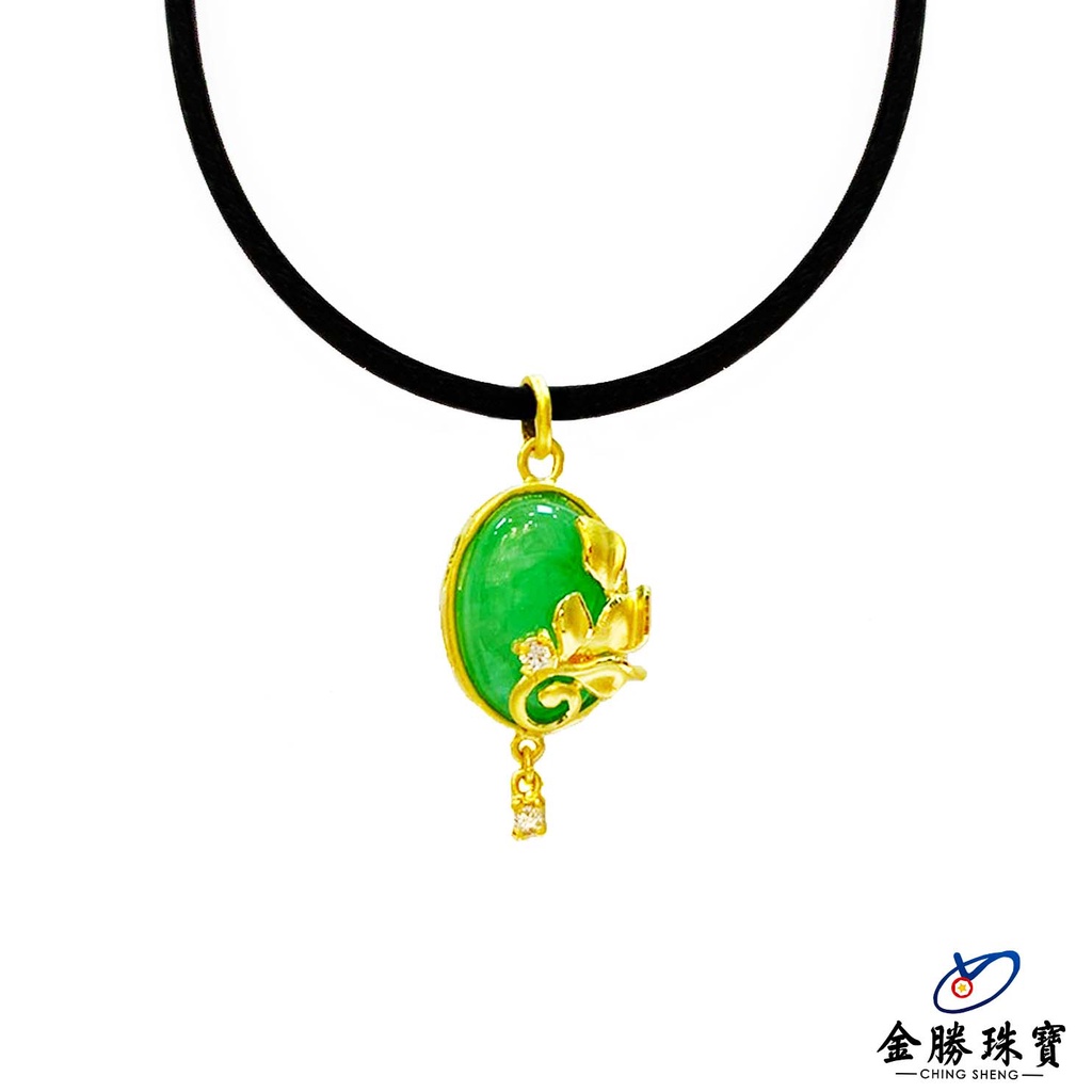 【幸運草金飾】 黃金墜子|附黑皮繩 寶石 花瓣 花紋 流線 金勝珠寶