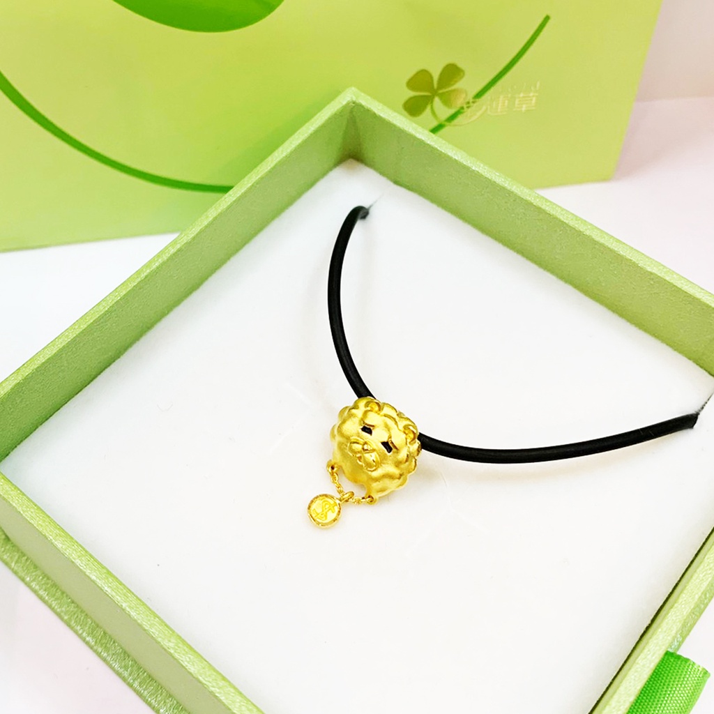 【幸運草金飾】 黃金墜子|附黑皮繩 鬆獅 小狗 發財 金幣 流線 金勝珠寶