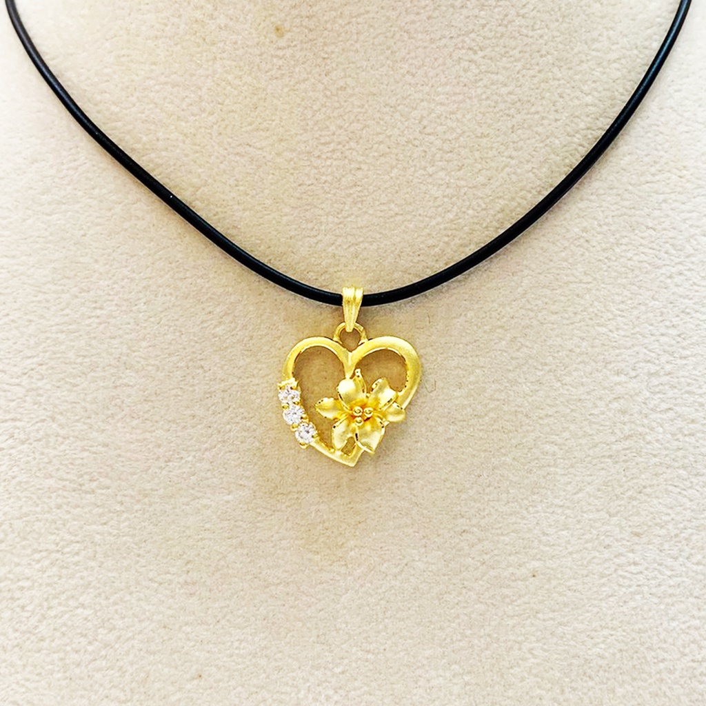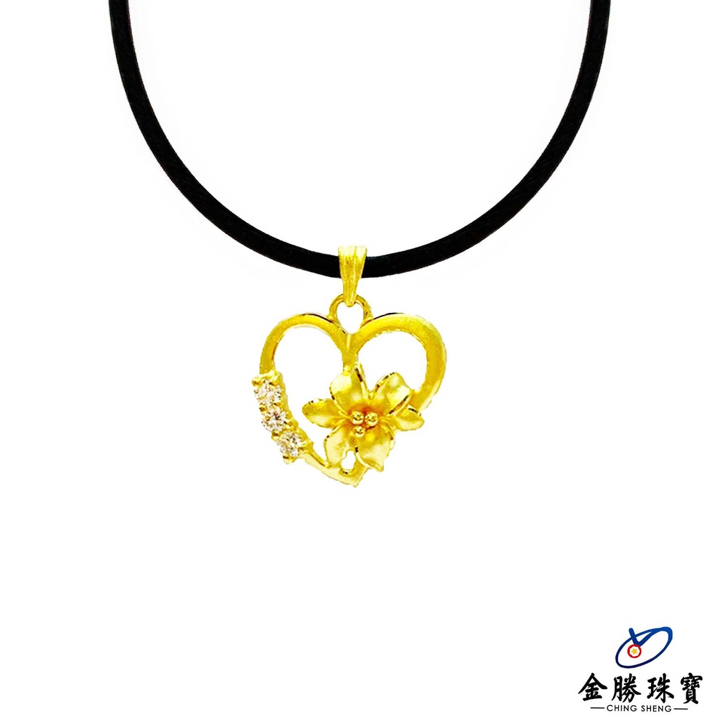 【幸運草金飾】 黃金墜子|附黑皮繩 寶石 愛心 Love 花瓣 花紋 流線 金勝珠寶