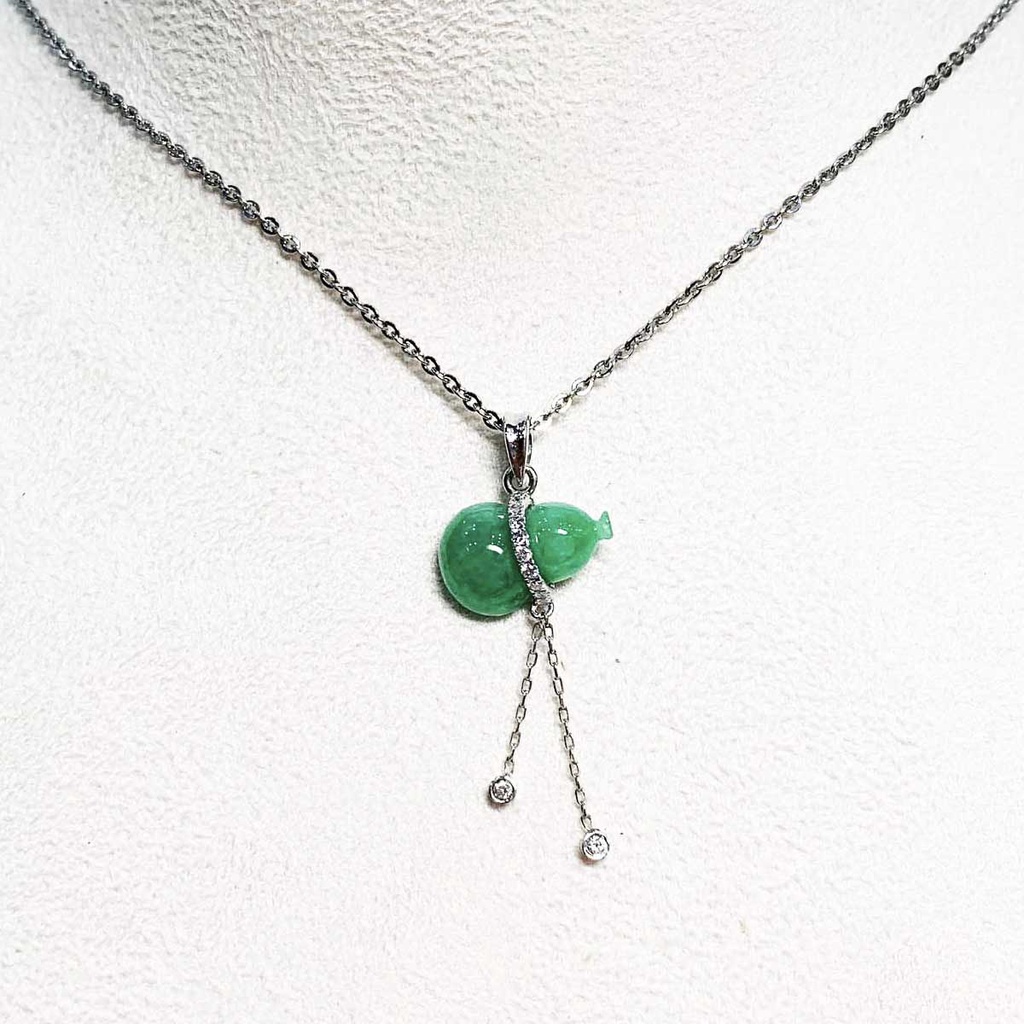 【金勝珠寶】 K金墜子|附白鋼項鍊 葫蘆 翡翠 硬玉 尊貴 精緻 優雅 含金量