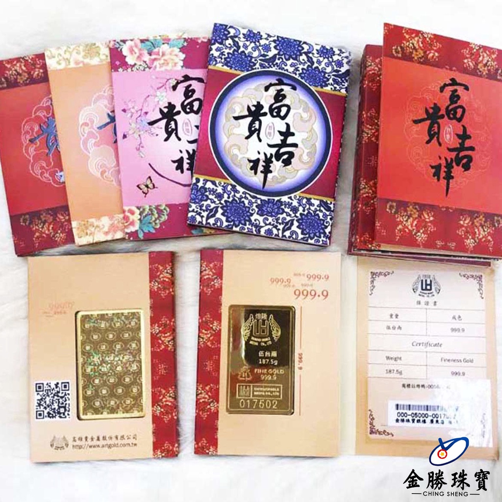 【金勝珠寶】 黃金條塊|純黃金 5.00~10.00台錢 金條 精裝版 證書 經典