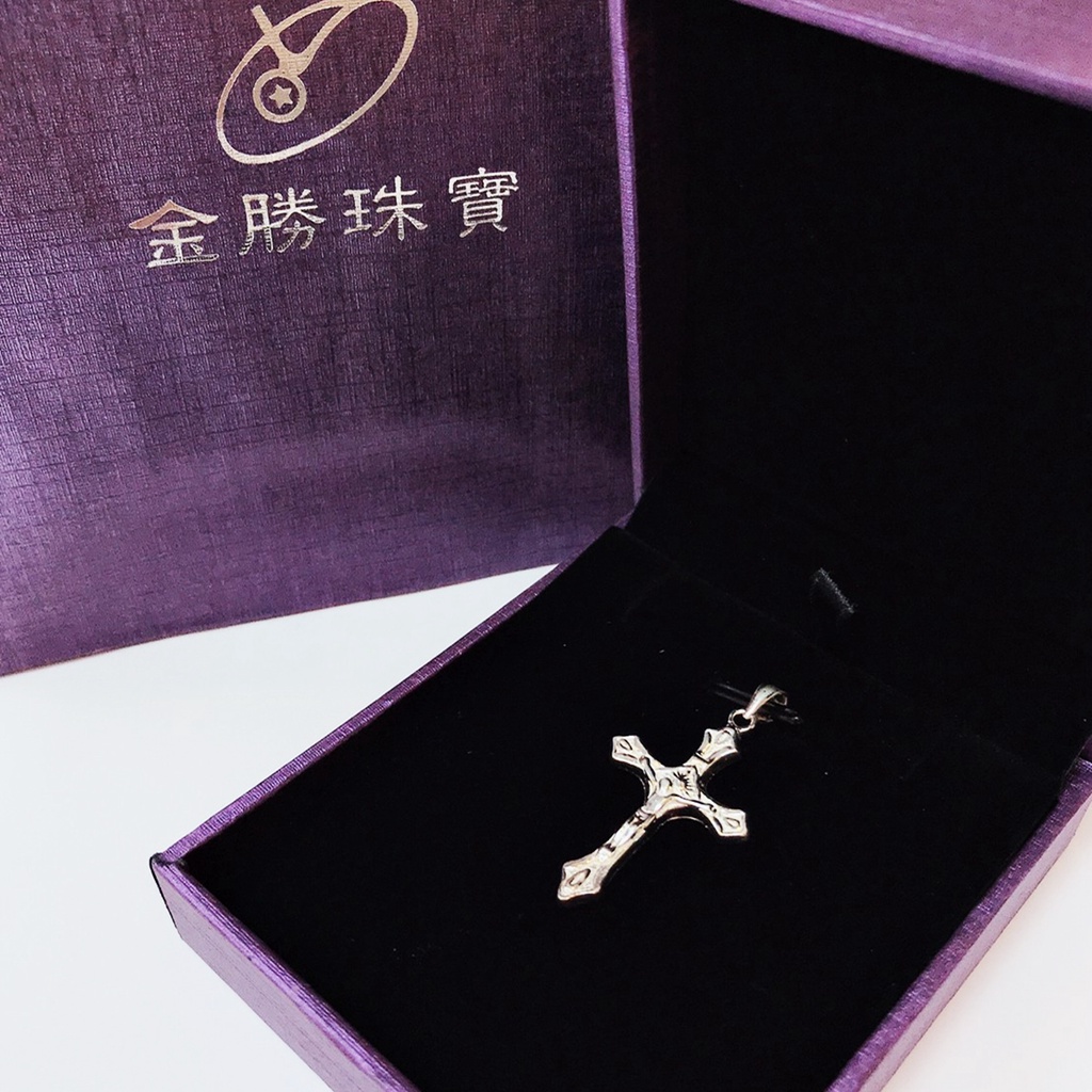 【金勝珠寶】 白銀墜子|附黑皮繩 單面款 雙面款 十字架 時髦 簡約 避邪
