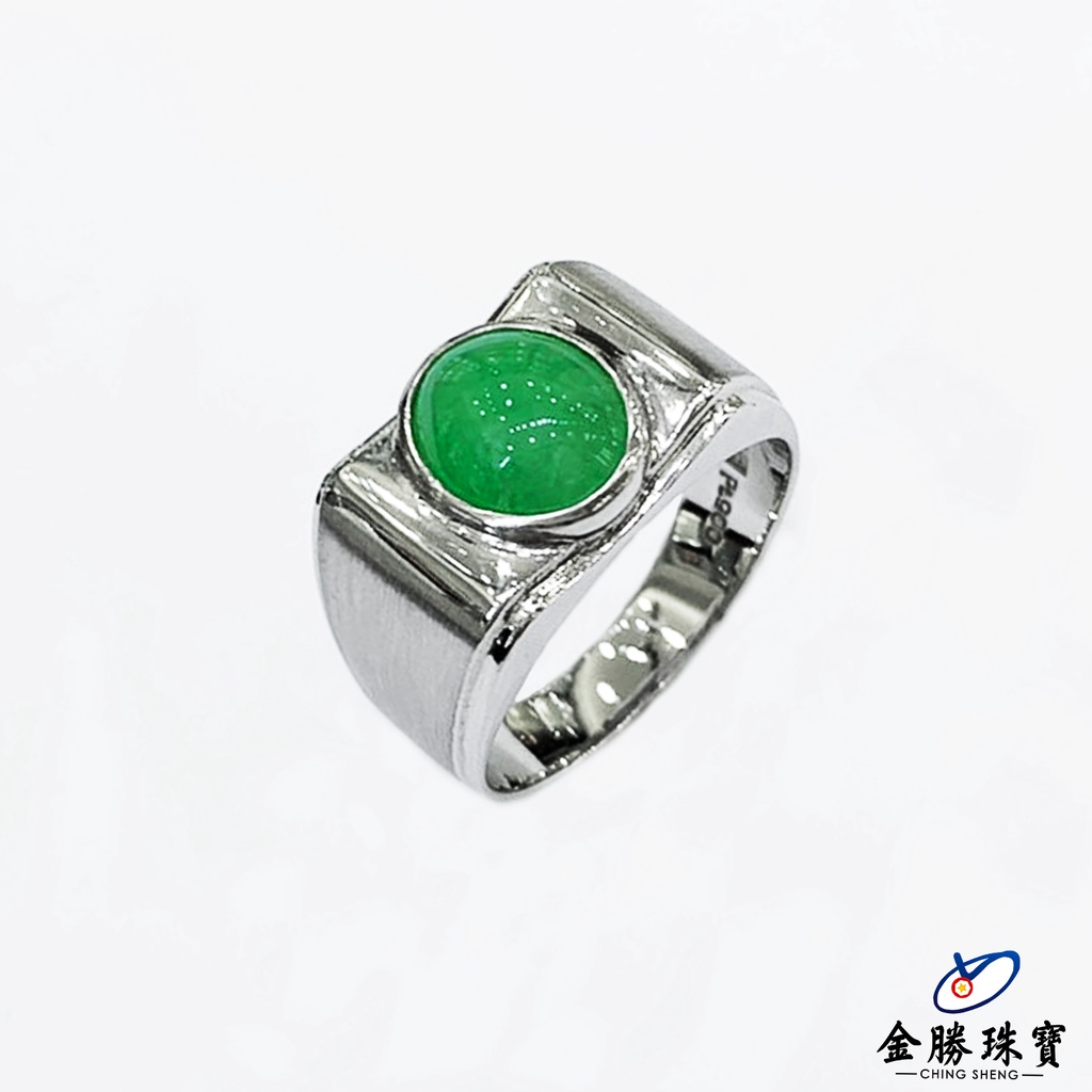 【金勝珠寶】 白金戒指|固定式16號 翡翠 硬玉 尊貴 神秘 時尚 氣質