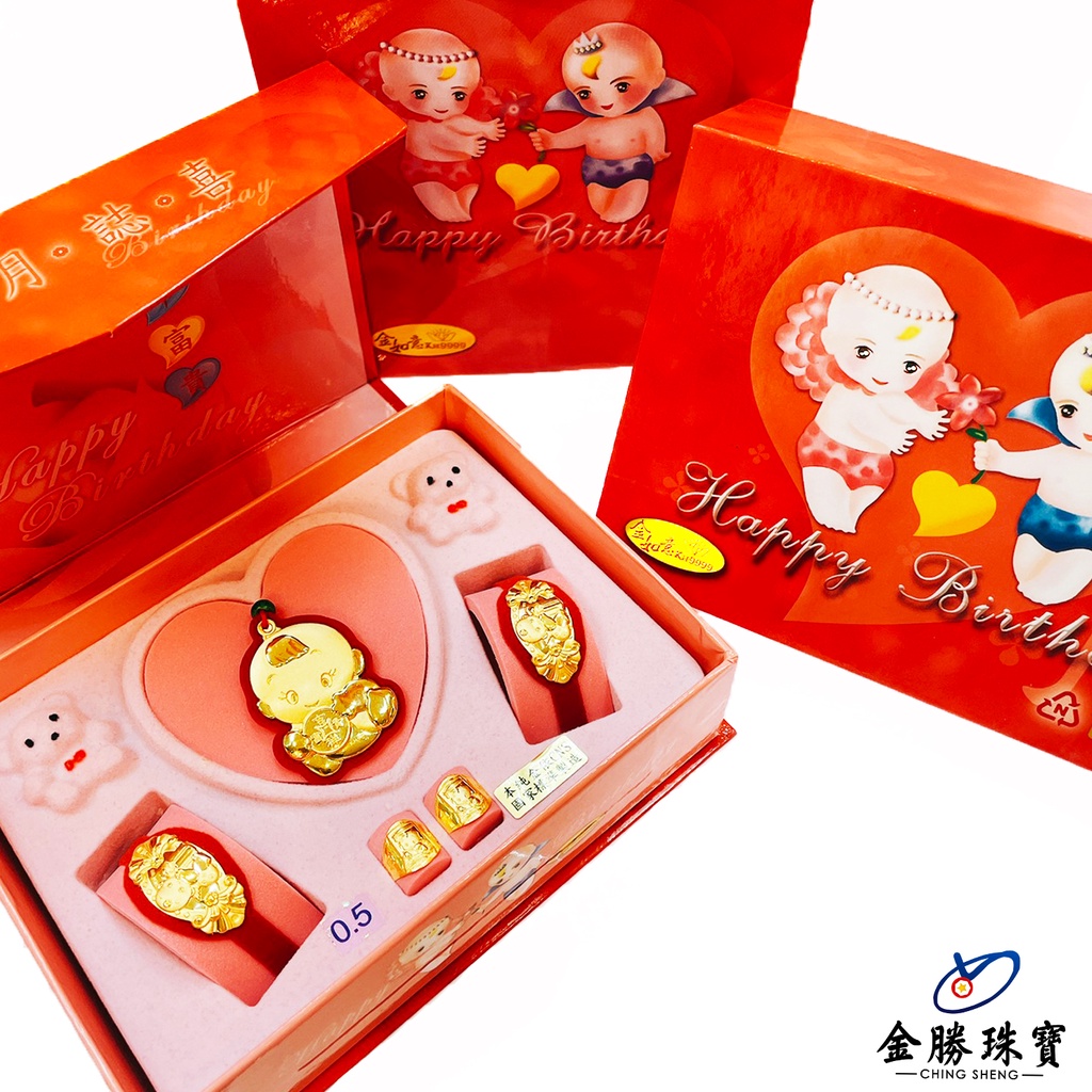 【金勝珠寶】 黃金童組|金品彌月禮盒 0.50台錢 兒童 小天使 小男生 寶寶