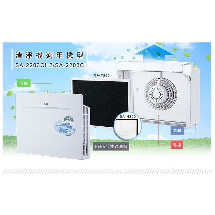 【尚朋堂】空氣清淨機SA-2258DC/SA-2203C-H2/SA-2255F專用高效活性碳濾網SA-T556