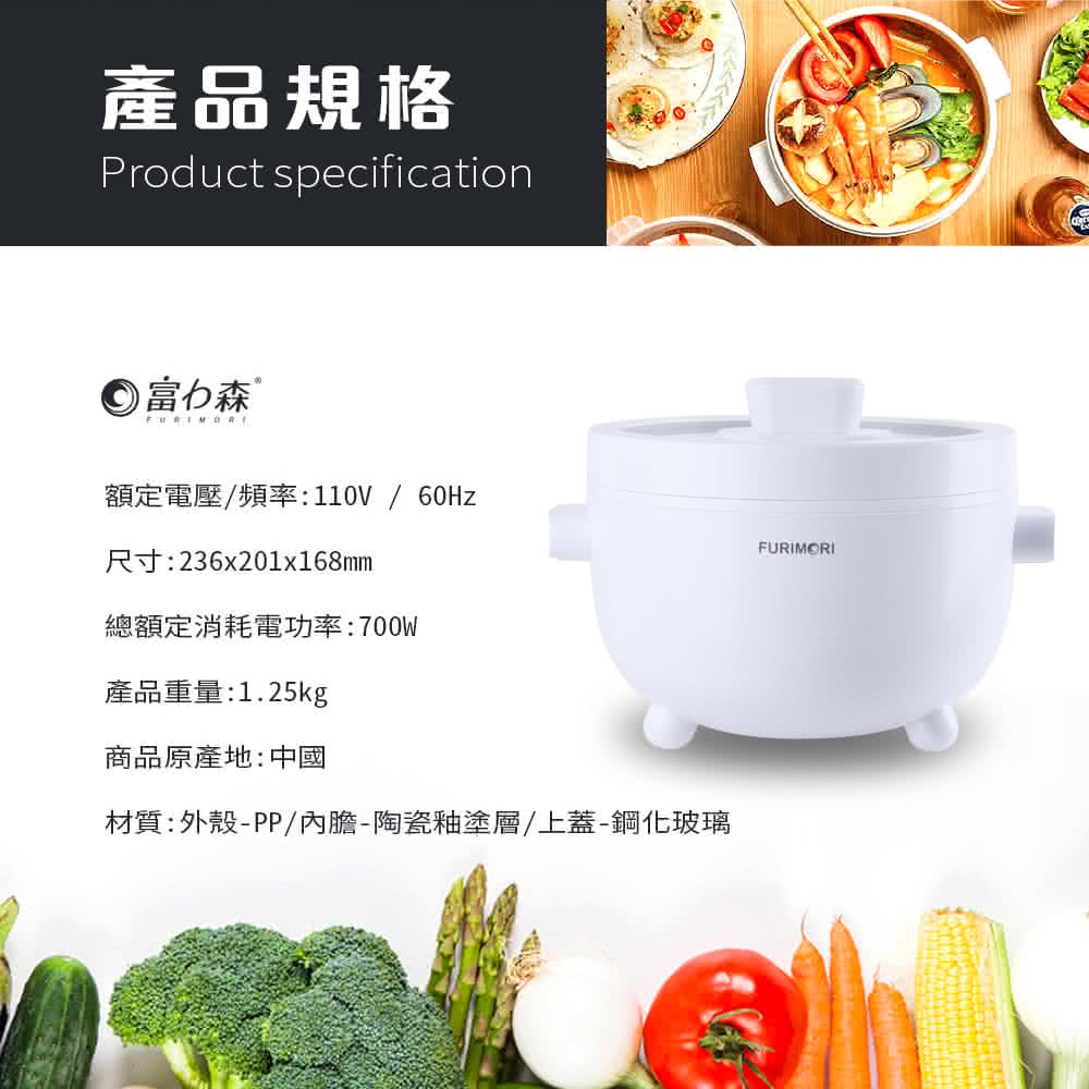 【日本FURIMORI 富力森★】陶瓷釉不沾內膽2L多功能電火鍋(FU-EH216)