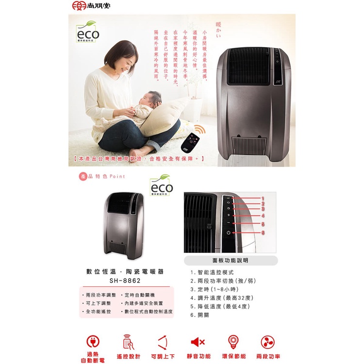 尚朋堂 數位恆溫陶瓷電暖器SH-8862
