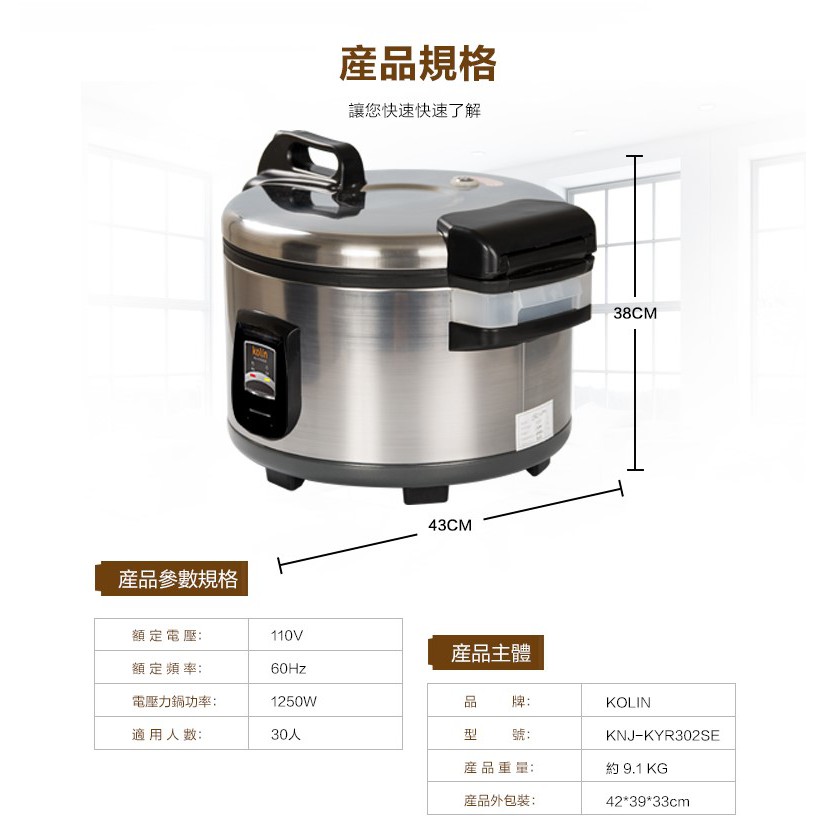 Kolin 歌林 30人份營業用電子鍋 KNJ-KYR302SE