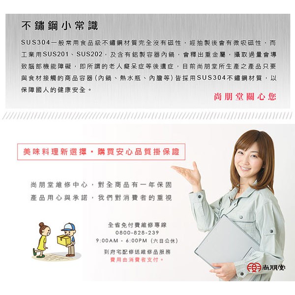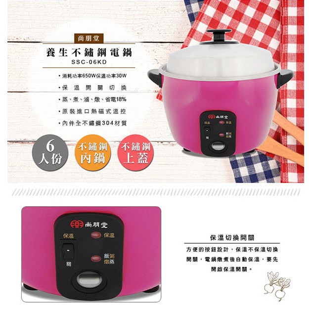 【尚朋堂】6人份養生不鏽鋼電鍋SSC-06KD