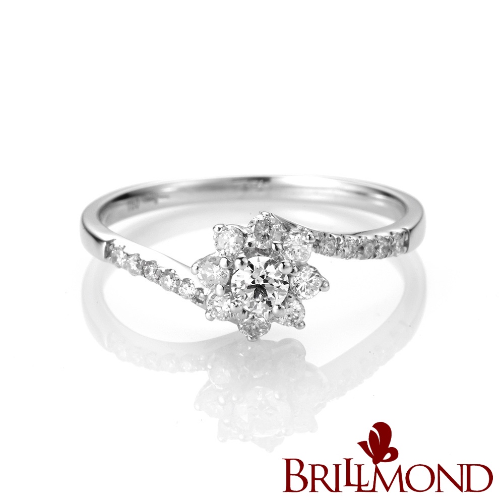 【BRILLMOND】30分 天然鑽石 白K金 花舞臻情 戒(天然鑽石總重30分)