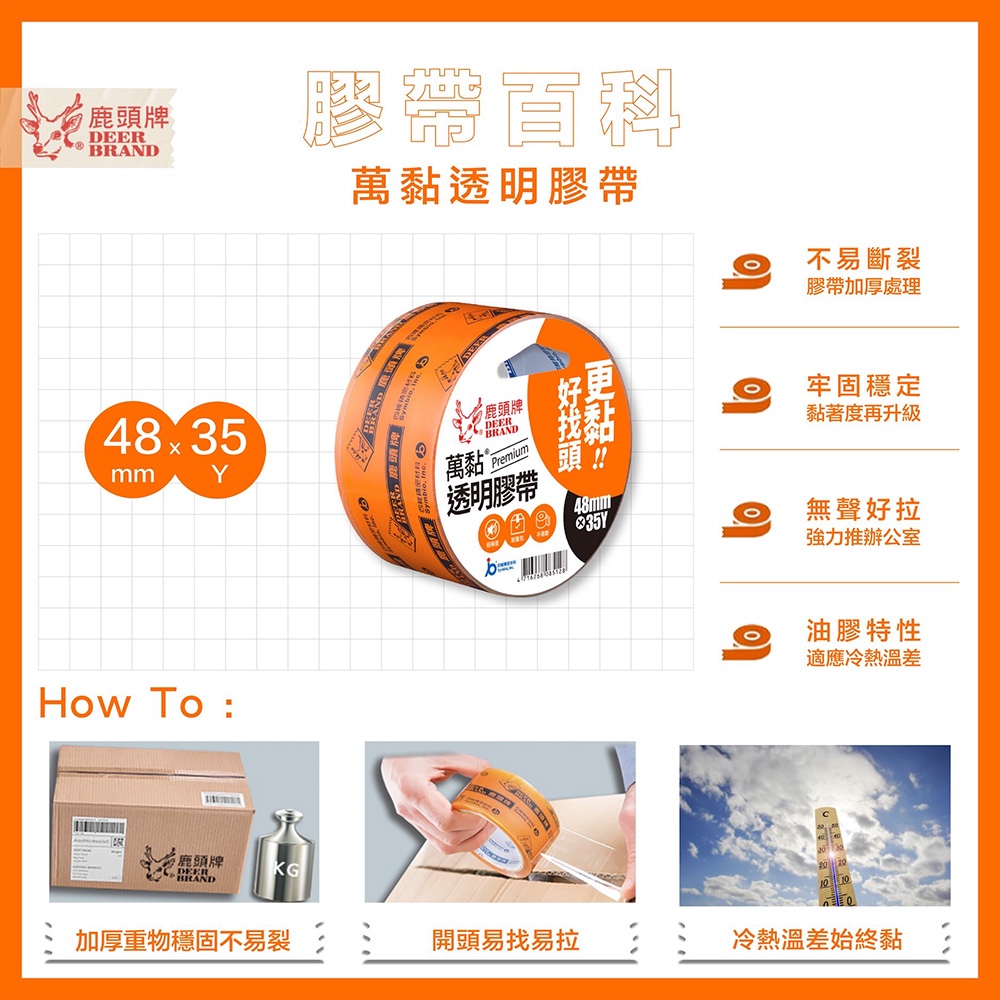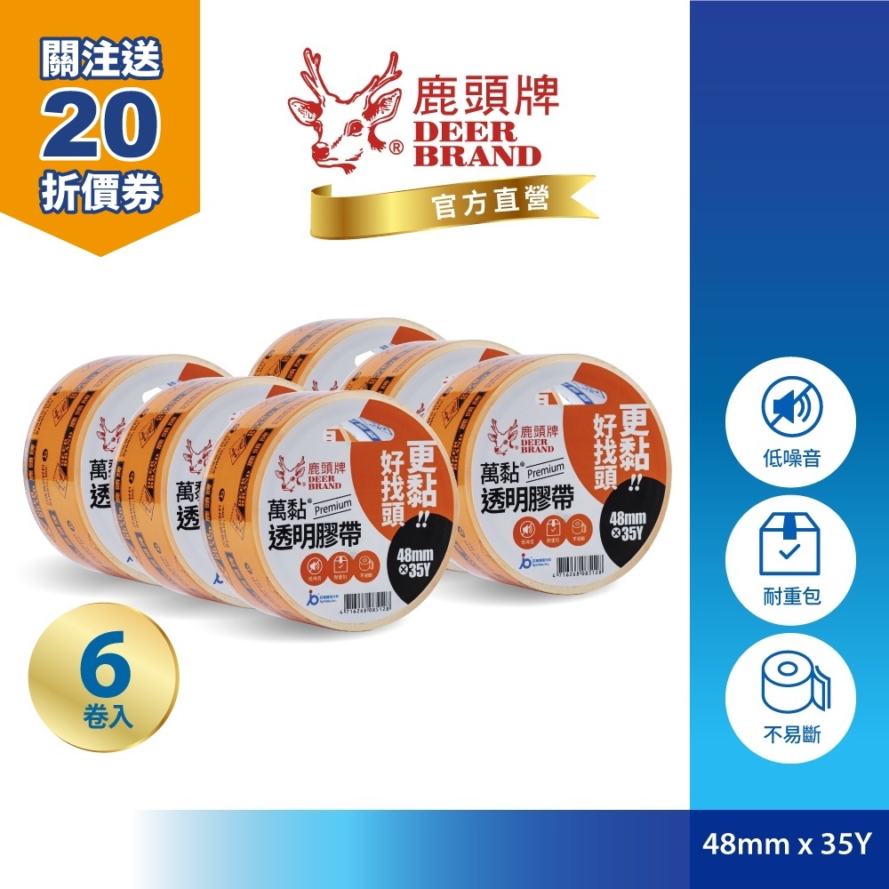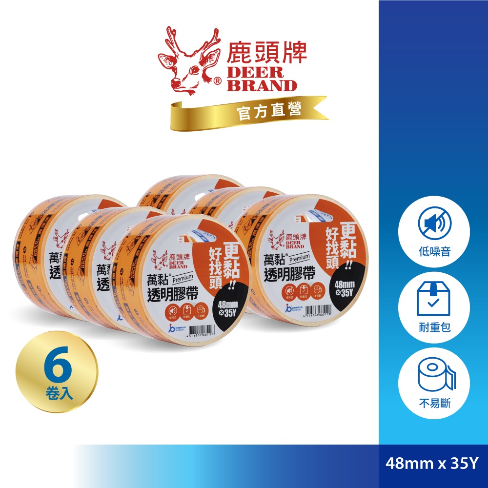 鹿頭牌 靜音膠帶丨48mmX35Y丨6入束裝丨厚度升級 重物封箱 無聲透明膠帶丨PHS7Q丨官方直營