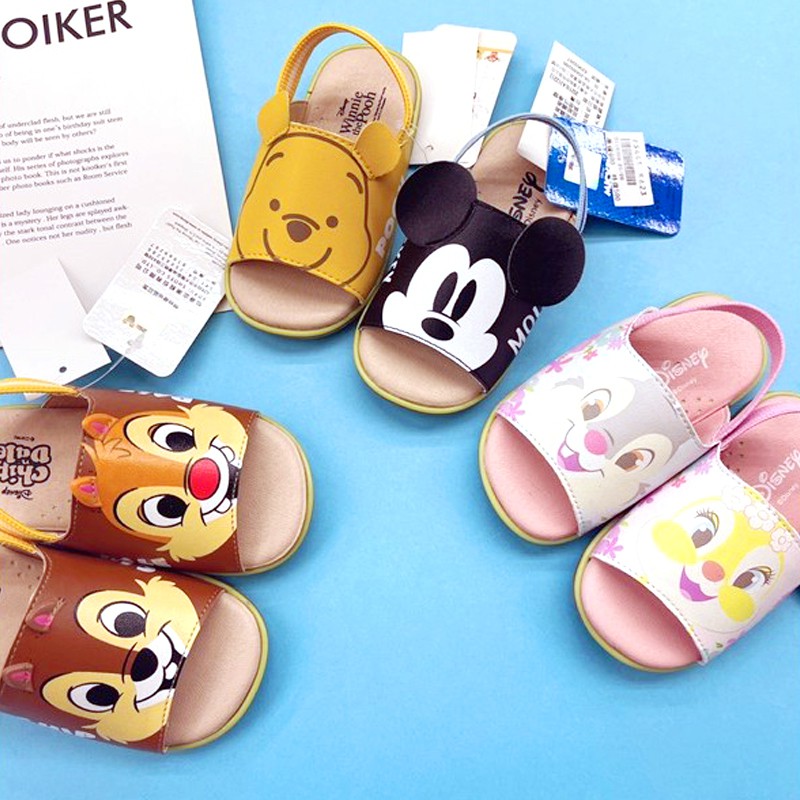 迪士尼寶寶涼拖鞋 學步拖鞋 寶寶拖鞋 寶寶涼鞋 小童涼鞋 舒適軟墊鬆緊帶拖鞋 米奇小熊維尼奇奇蒂蒂台灣製 F5306