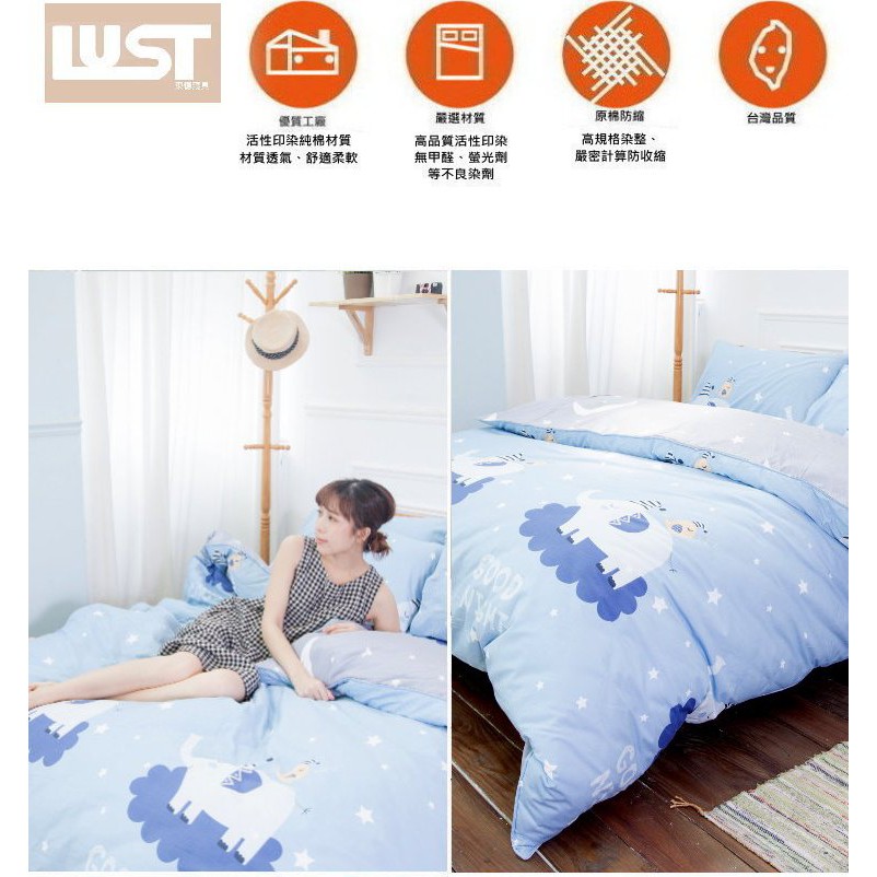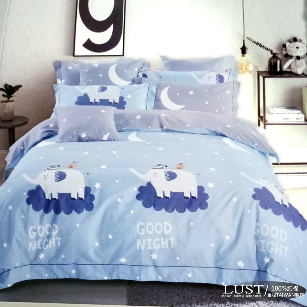 LUST LIVING【晚安大象】100%純棉/精梳棉床包/枕套/被套 台灣製