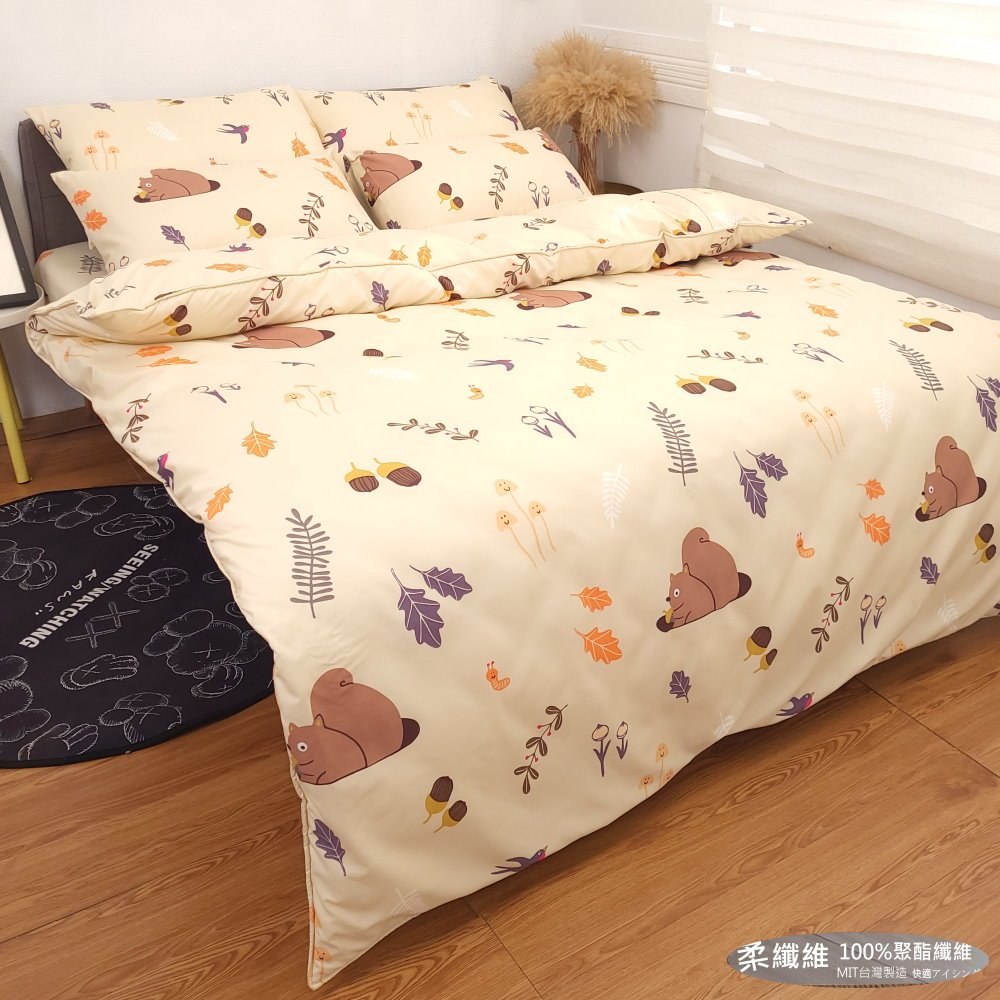 【LUST】 尋覓松鼠 柔纖維-床包/枕套/被套組(各尺寸)、台灣製