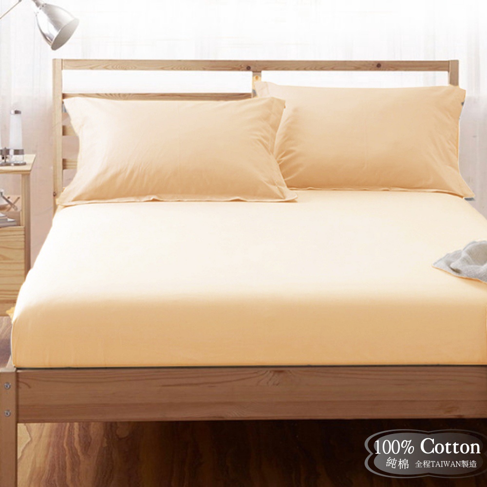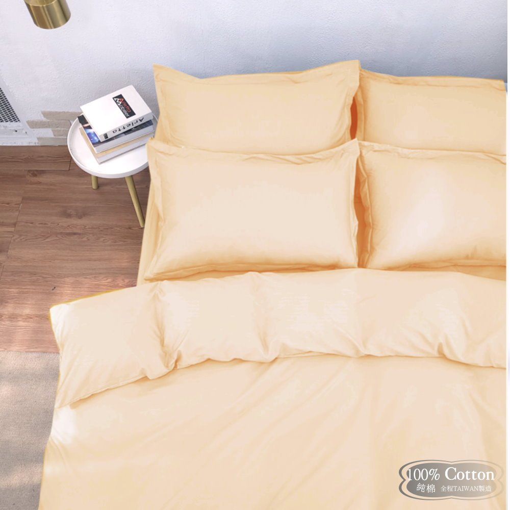 【LUST】素色簡約 鵝黃100%純棉/精梳棉床包/歐式枕套 /被套-台灣製造