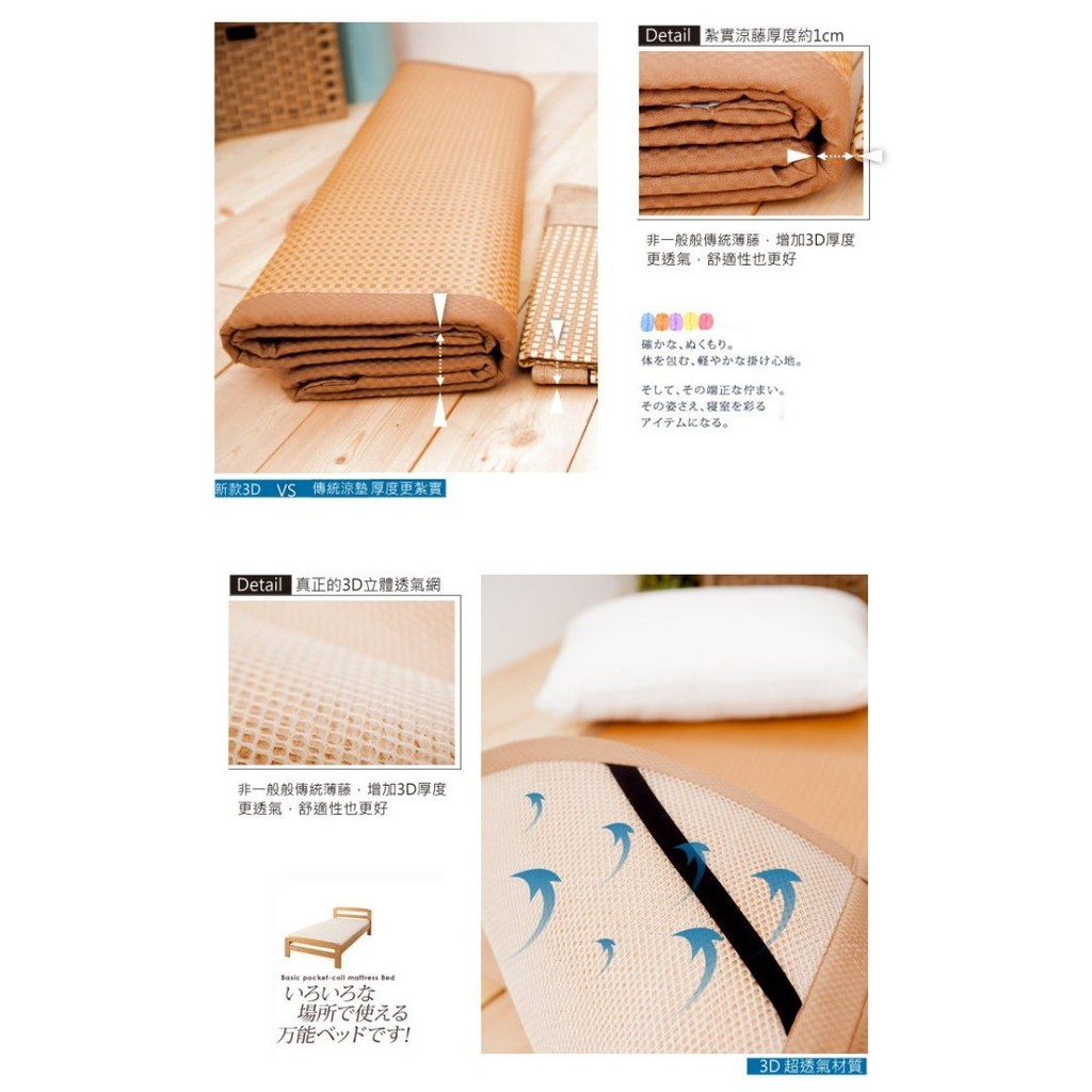 【LUST】【3D透氣網-原創柔藤涼蓆-】極厚1公分的涼爽竹蓆(日本原料)