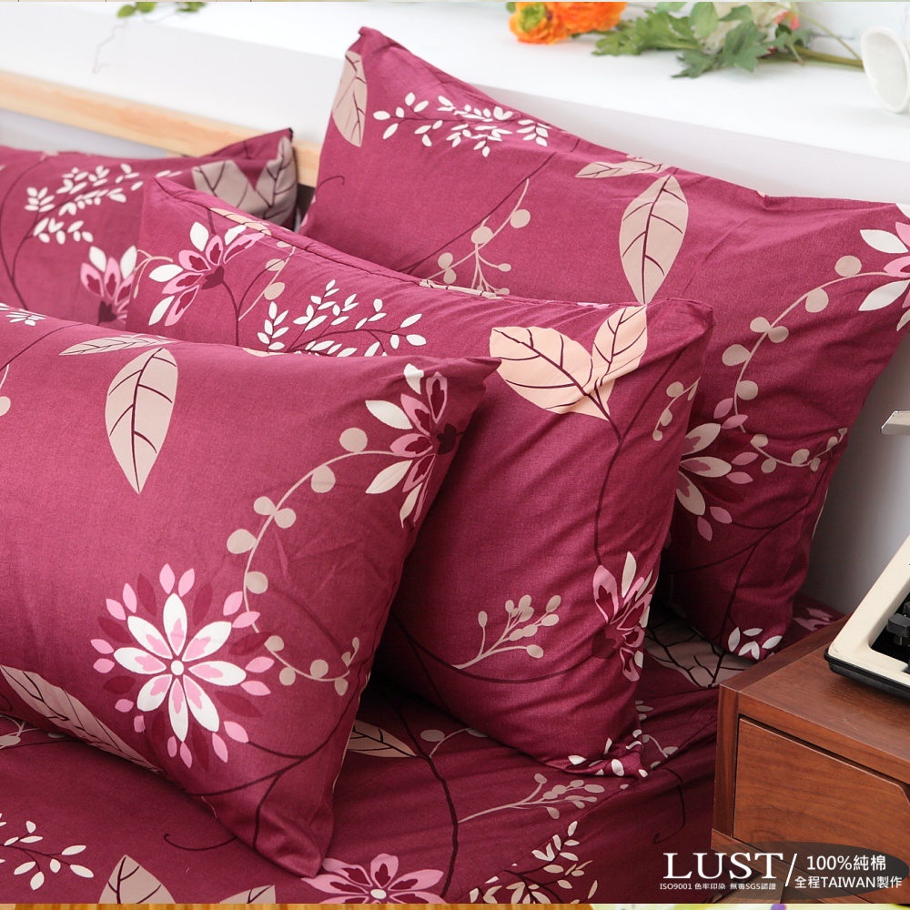 【LUST】【普羅旺紅】100%純棉/精梳棉床包/枕套/被套-台灣製