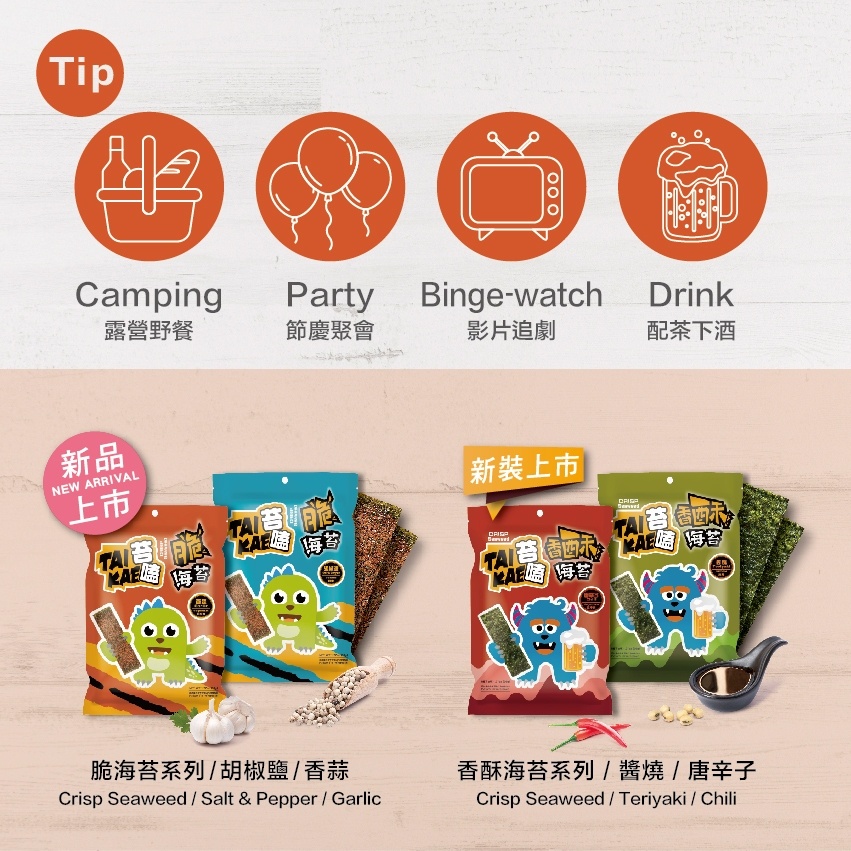【TAI KAE 苔嗑】 脆海苔(香蒜風味) 36g |辦公室團購(台灣第一家) 口感獨特