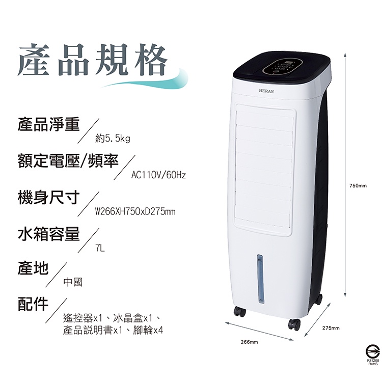 【禾聯 HERAN】 HWF-07ND020 水冷扇【早鳥報到 快速出貨】