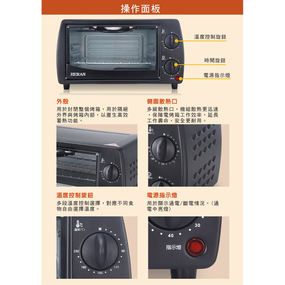 HERAN禾聯 9L二旋鈕電烤箱 HEO-09K1