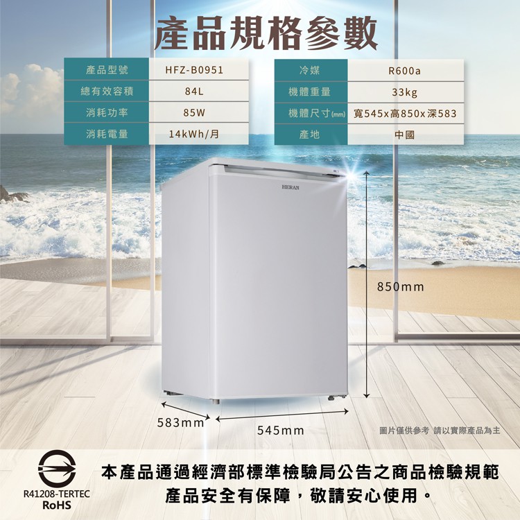 HERAN 禾聯 84L四星急凍直立式冷凍櫃HFZ-B0951含基本安裝
