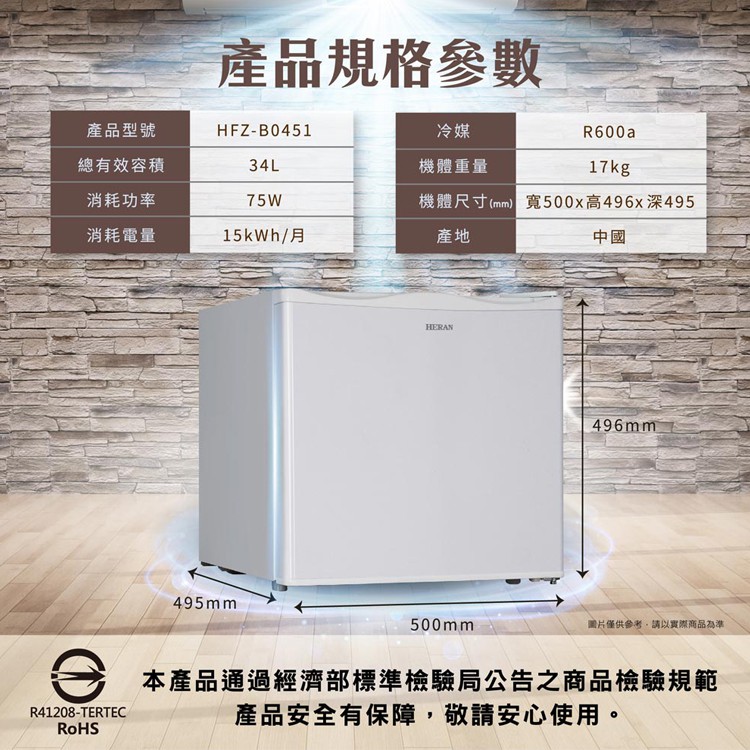 HERAN禾聯 34L迷你超市 HFZ-B0451 四星急凍直立式冷凍櫃