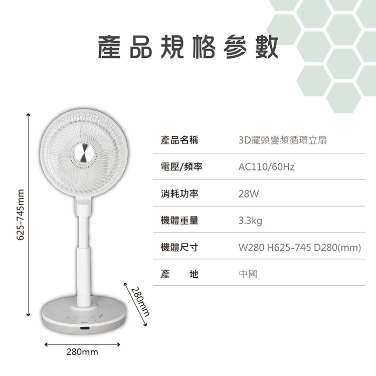 【禾聯 HERAN】3D擺頭 10吋DC渦流立扇-HAF-10HG430
