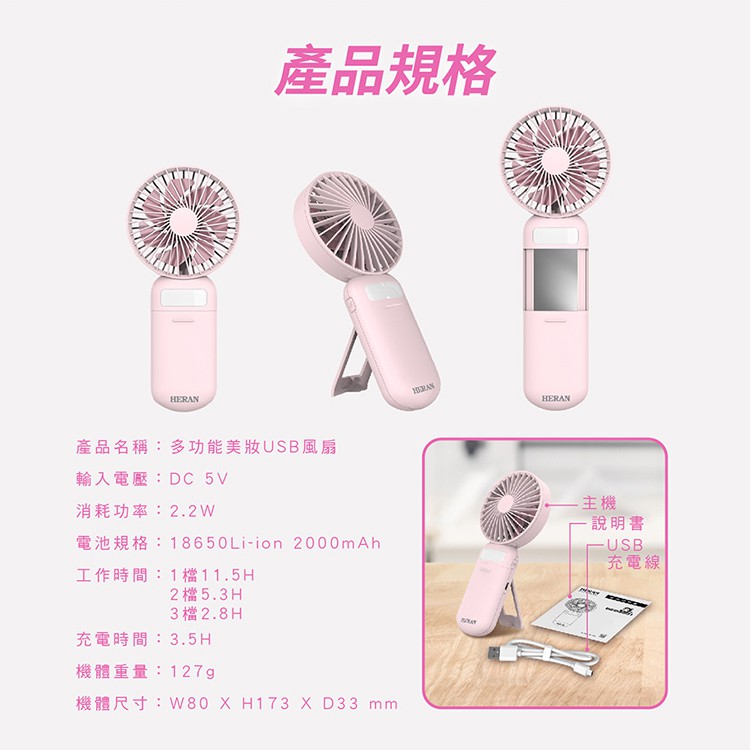 HERAN禾聯 USB多功能化妝扇HUF-07HP010