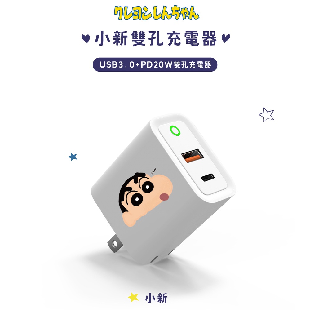 【TOYSELECT】蠟筆小新粉嫩USB3.0+PD20W雙孔充電器