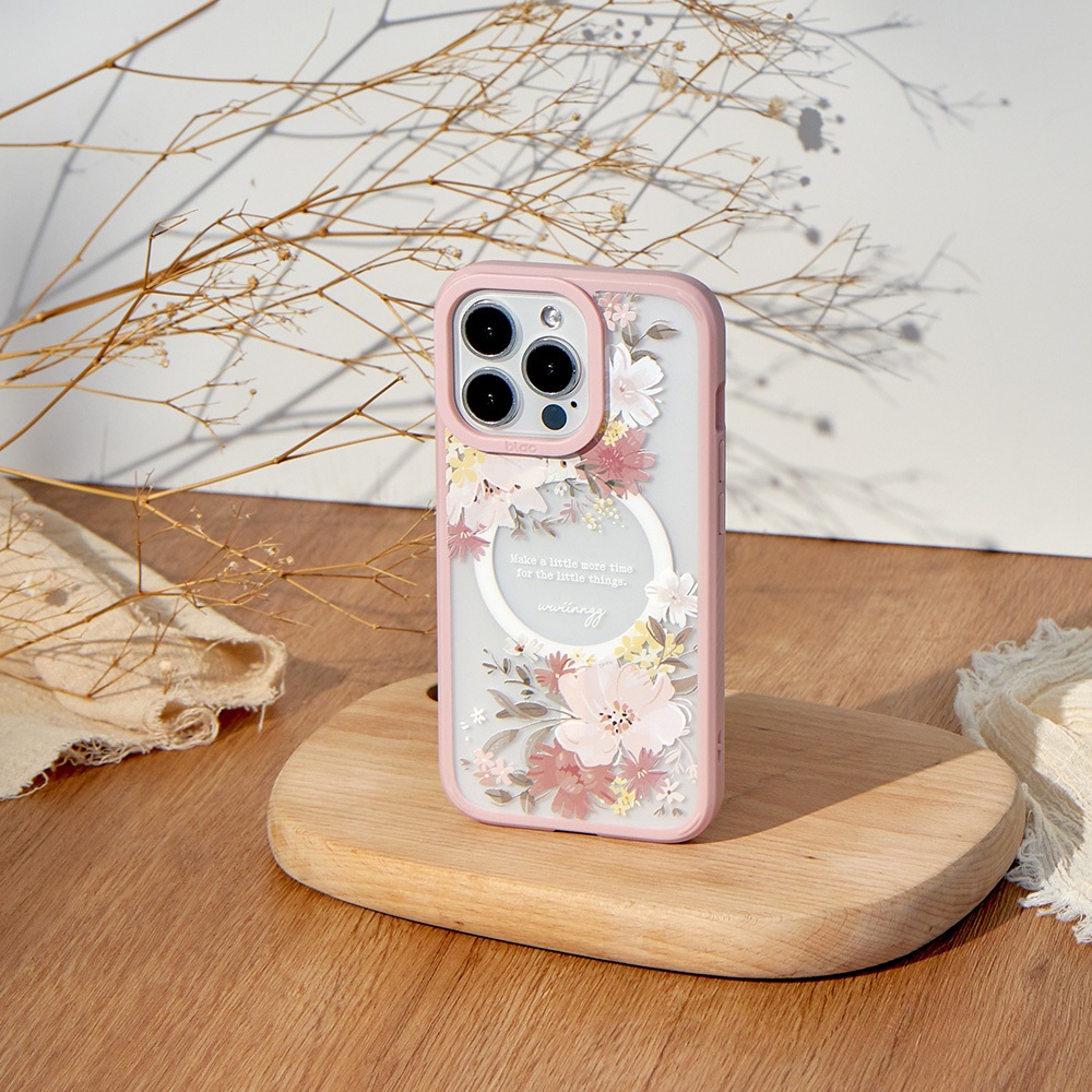 【TOYSELECT】wwiinngg浪漫粉花極光霧透 MagSafe iPhone手機殼