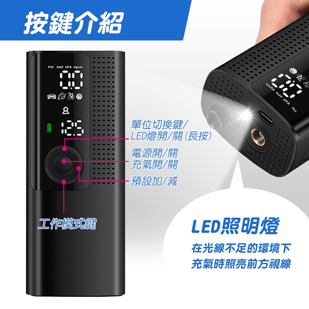 【任e行】V2 LED顯示 多功能 無線打氣機 充器機