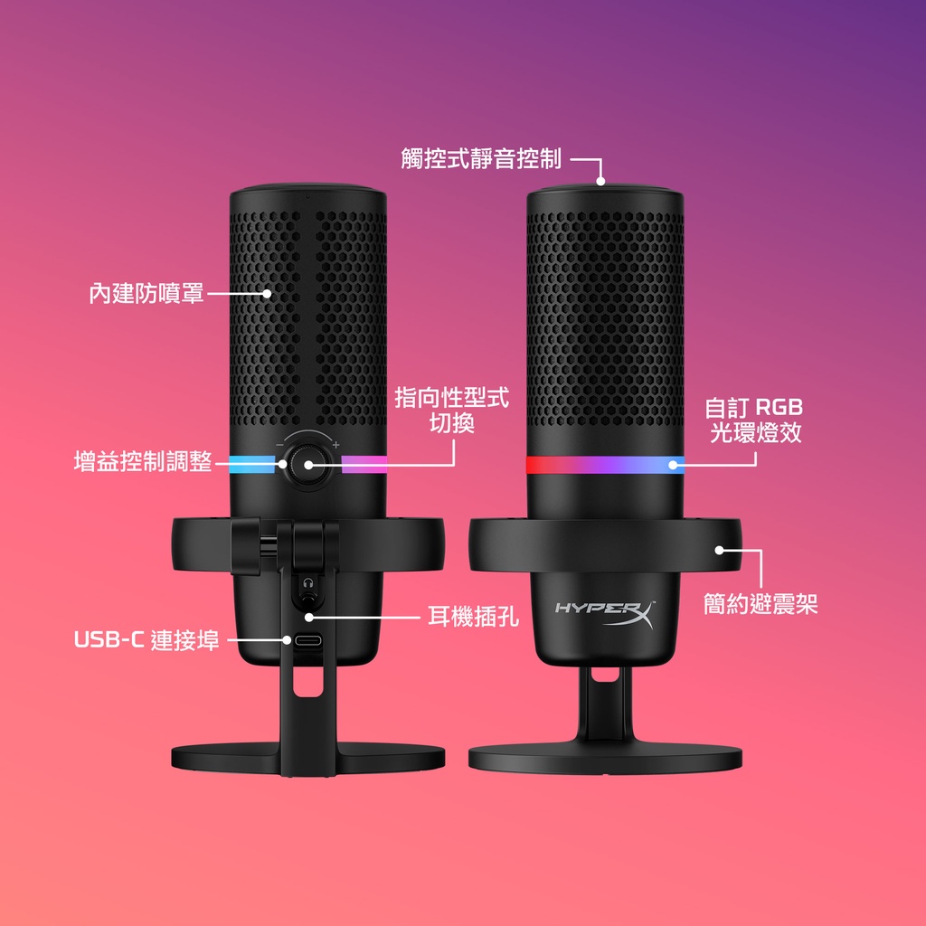 HyperX DuoCast – RGB USB 電容式 麥克風【HyperX官方旗艦店】