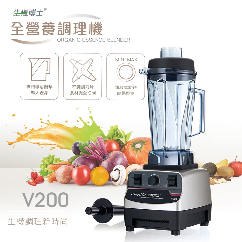 【貴夫人Ladyship】生機博士全營養調理果汁機V200香檳色20000RPM/850W旋鈕轉速+瞬間轉動鍵