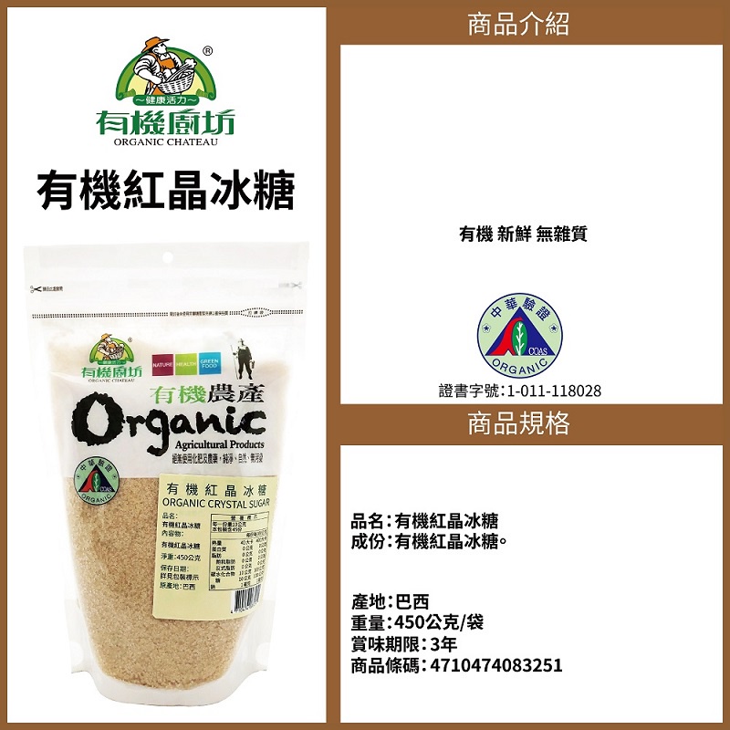 【有機廚坊】有機紅晶冰糖 450公克/袋*