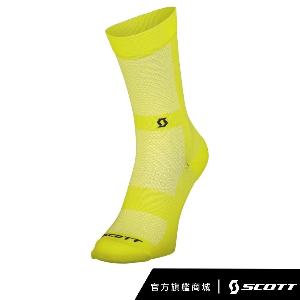 SCOTT NO SHORTCUTS經典標語中筒型自行車襪[螢光黃]