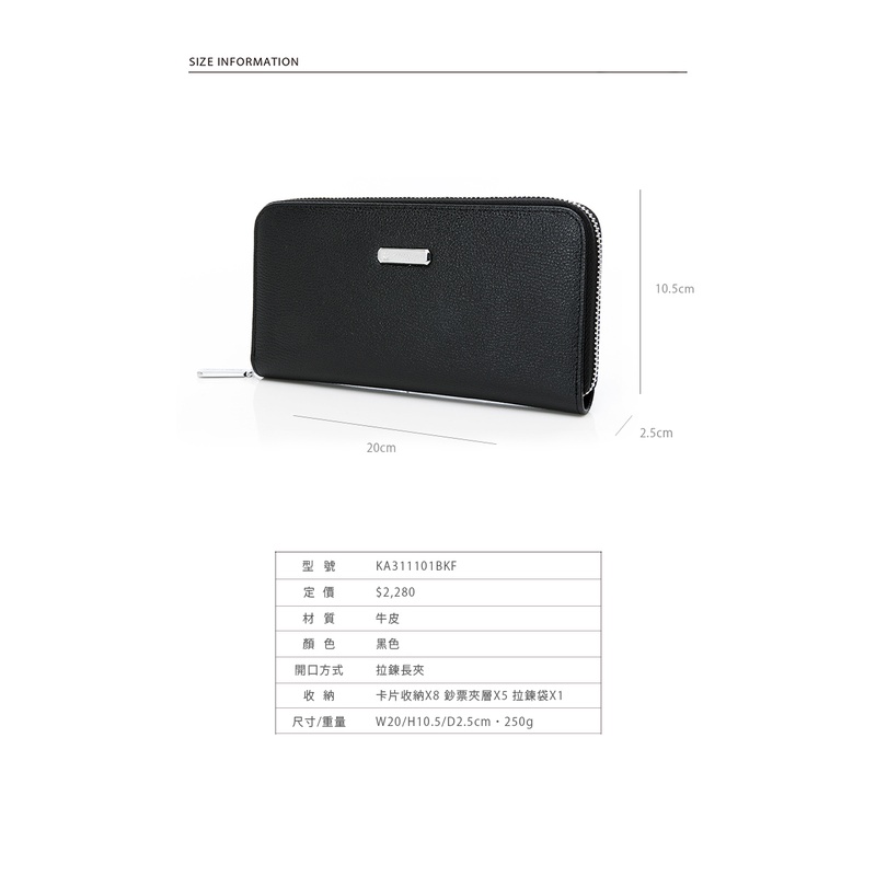 【金安德森】STONE 簡約防刮拉鍊長夾-黑色(KA311101BKF)
