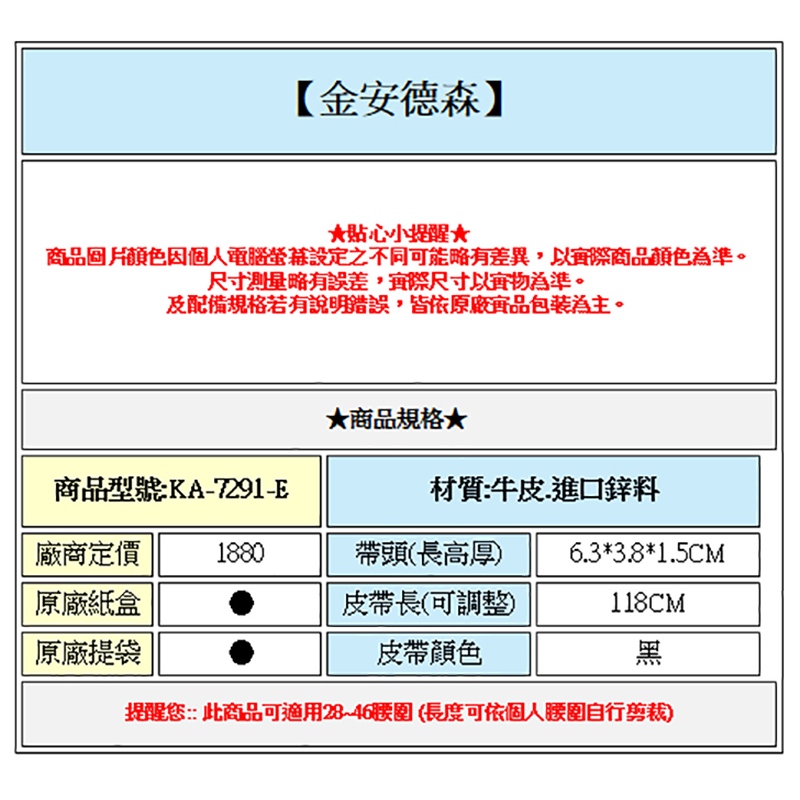 【金安德森】 雅量風尚男 自動卡榫 紳士皮帶(KA-7291-E)