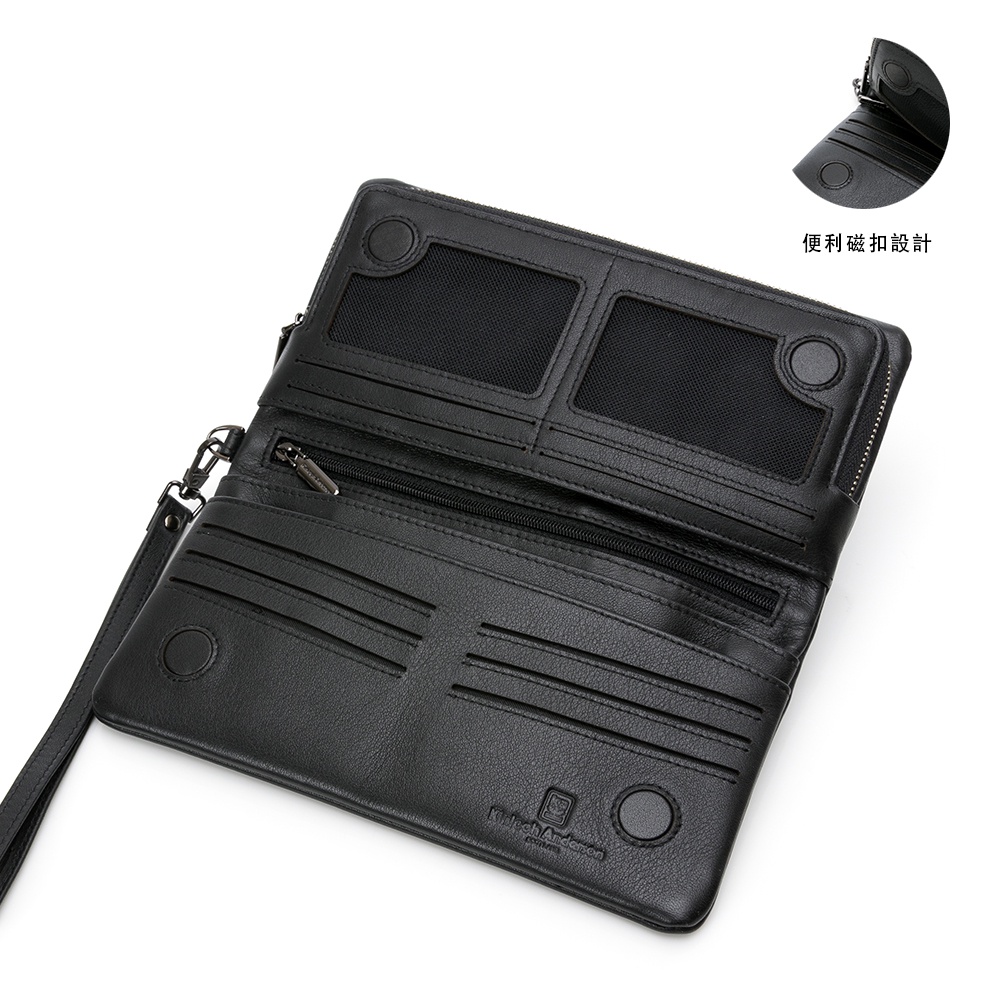 【金安德森】個性主宰 橫式10卡 磁扣拉鍊長夾-黑色 (KA203005BKF)
