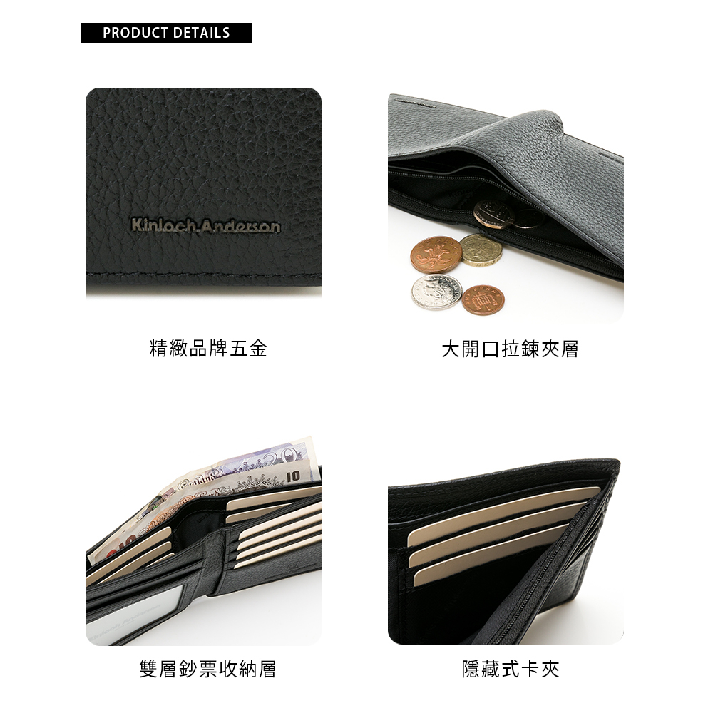 【金安德森】Mauro 牛皮左右翻單窗式短夾-神秘黑