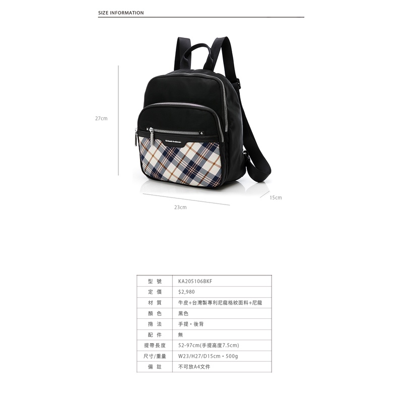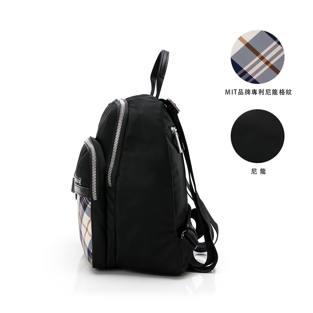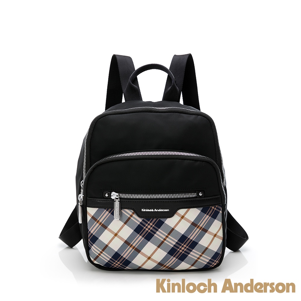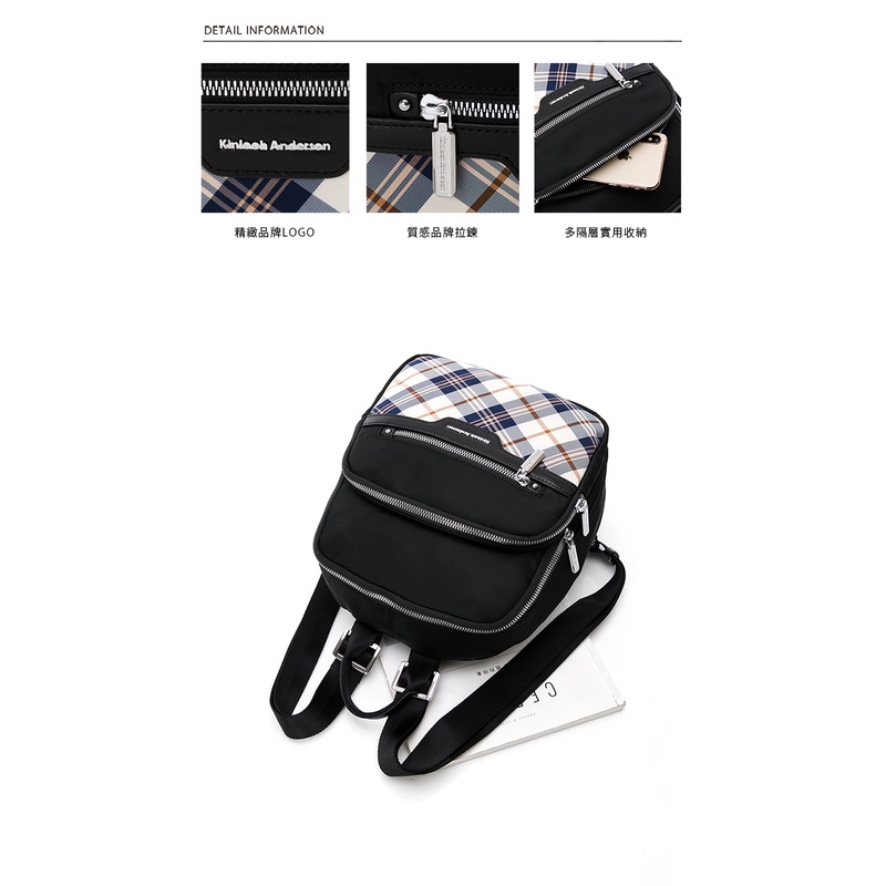 【金安德森】UNIQUE經典格紋 多功能隔層中款後背包 黑色 紫色 粉色