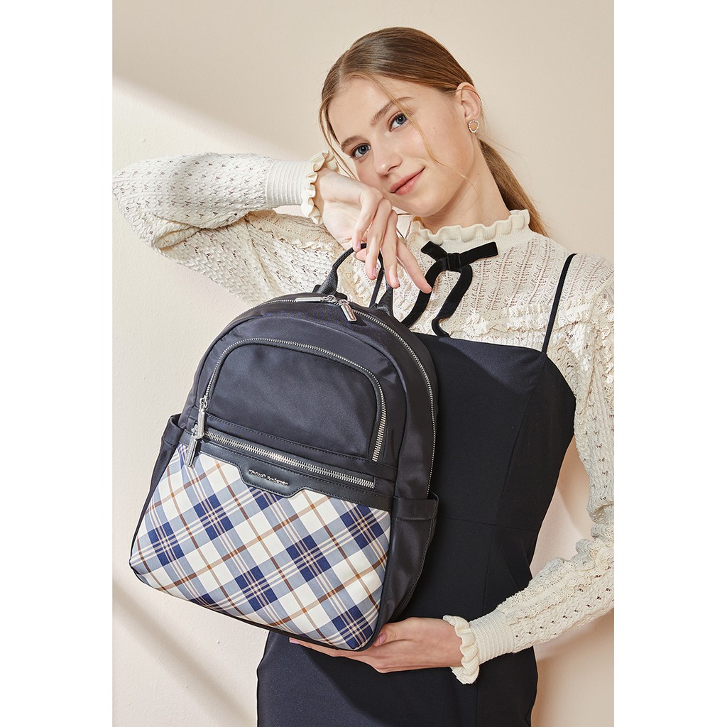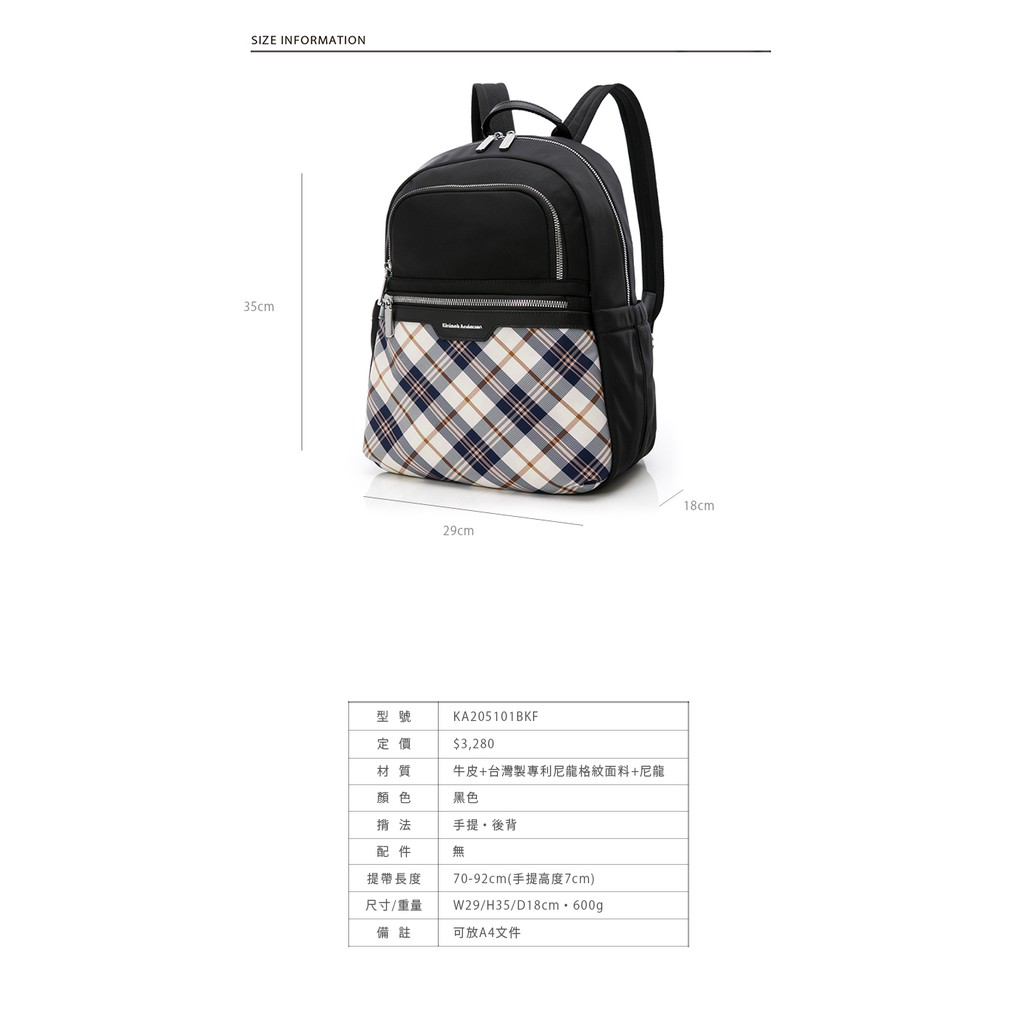 【金安德森】UNIQUE經典格紋 多功能隔層後背包 多色任選 黑色 紫色 粉色